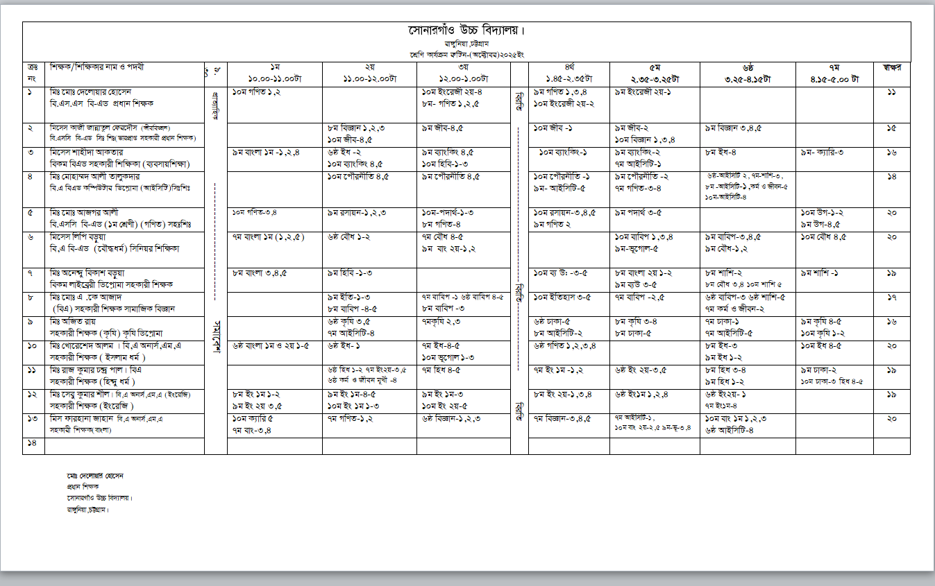 Class Routine 2025