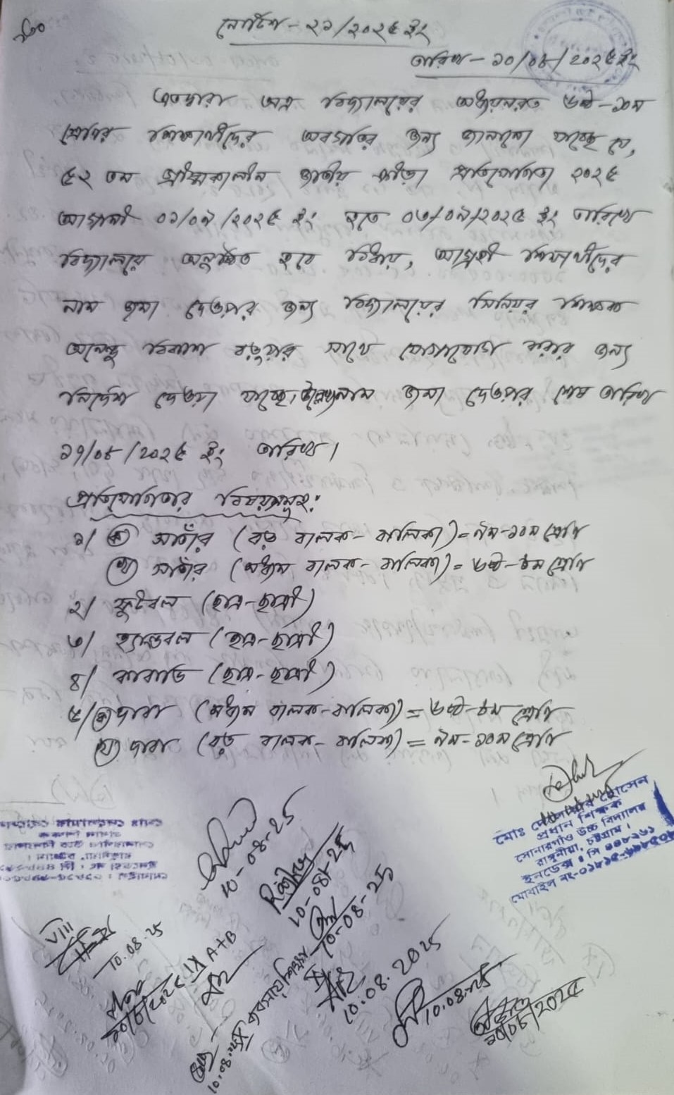 | 07/15/2025 | এস.এস.সি পরীক্ষায় অকৃতকার্য শিক্ষার্থীদের পুন-ভর্তি |